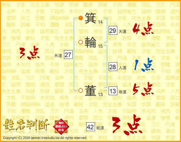 箕(14画)輪(15画) 董(13画)
