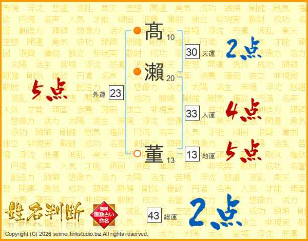 髙瀨董さんの人運は33画の4点!