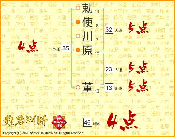 勅使川原董さんの総運は45画の4点!