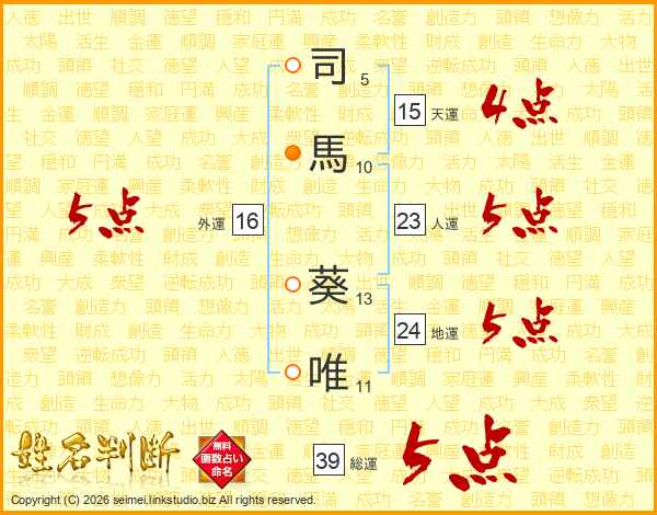 司(5画)馬(10画) 葵(13画)唯(11画)