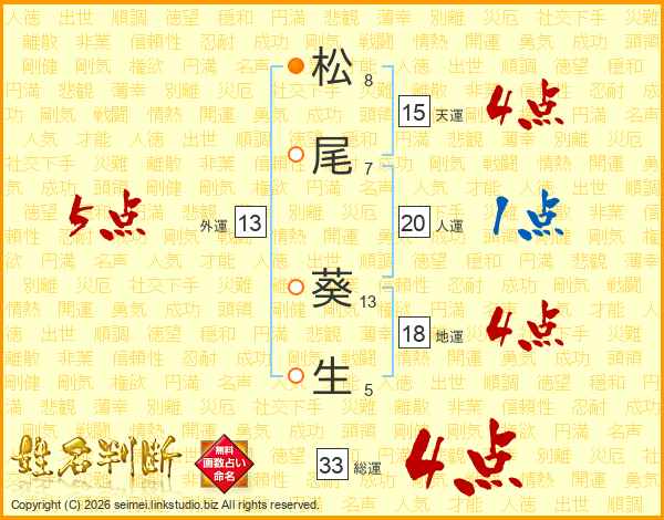 松尾葵生さんの総運は33画の4点!