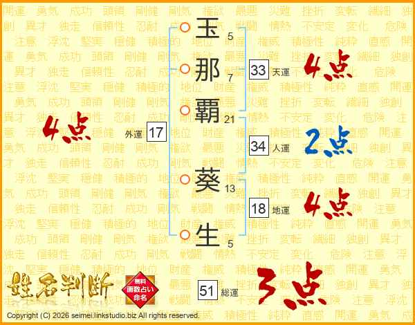 玉那覇葵生さんの外運は17画の4点!