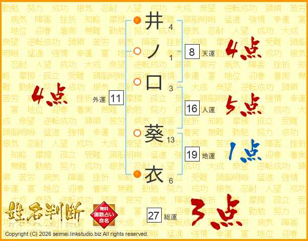 井ノ口葵衣さんの総運は27画の3点!