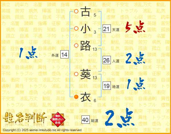 古小路葵衣さんの天運は21画の5点!