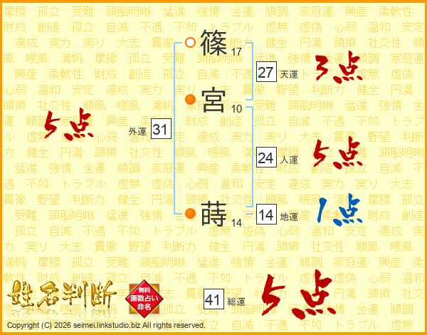 篠宮蒔さんの総運は41画の5点!