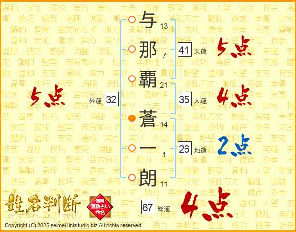 与那覇蒼一朗さんの天運は41画の5点!
