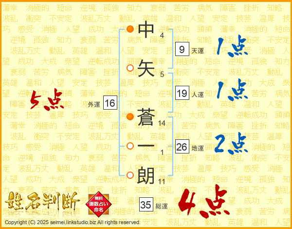 中矢蒼一朗さんの総運は35画の4点!