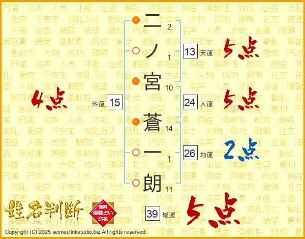二ノ宮蒼一朗さんの総運は39画の5点!