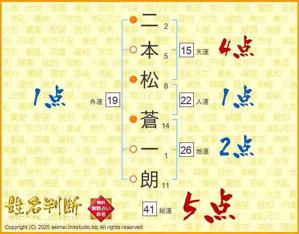 二本松蒼一朗さんの総運は41画の5点!
