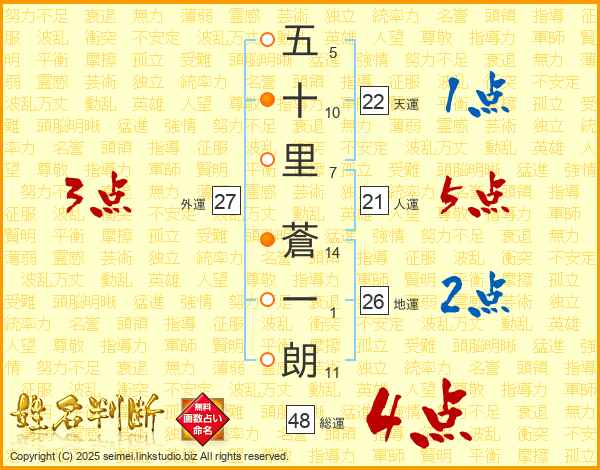 五十里蒼一朗さんの総運は48画の4点!