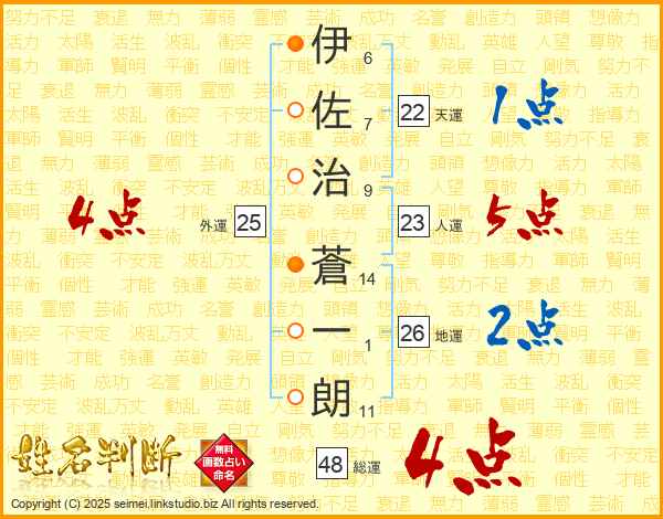 伊佐治蒼一朗さんの総運は48画の4点!