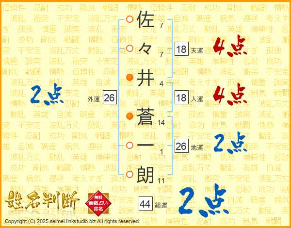 佐々井蒼一朗さんの総運は44画の2点!