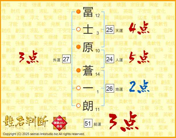 冨士原蒼一朗さんの天運は25画の4点!