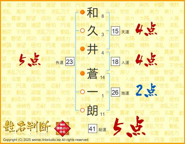 和久井蒼一朗さんの総運は41画の5点!