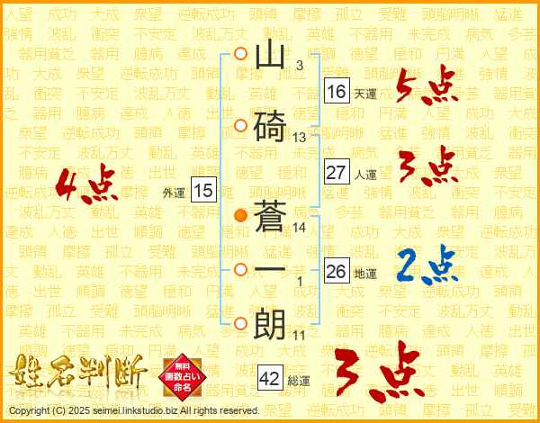 山碕蒼一朗さんの天運は16画の5点!