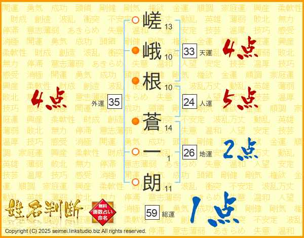 嵯峨根蒼一朗さんの総運は59画の1点!