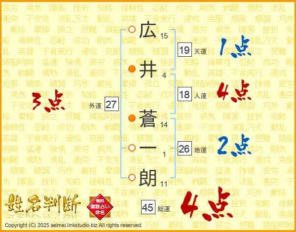 広(15画)井(4画) 蒼(14画)一(1画)朗(11画)