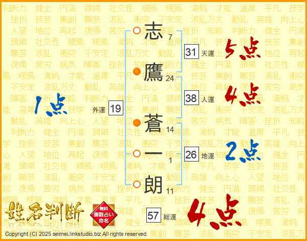 志鷹蒼一朗さんの総運は57画の4点!