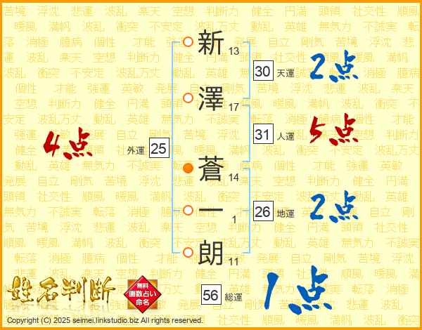 新(13画)澤(17画) 蒼(14画)一(1画)朗(11画)