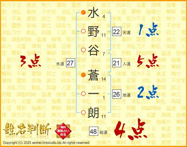 水野谷蒼一朗さんの総運は48画の4点!