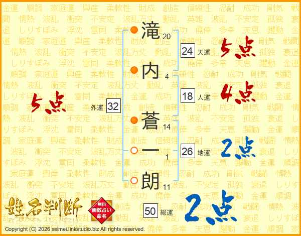 滝内蒼一朗さんの外運は32画の5点!