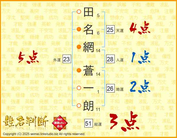 田名網蒼一朗さんの天運は25画の4点!