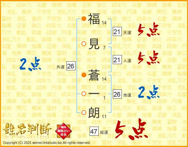 福(14画)見(7画) 蒼(14画)一(1画)朗(11画)