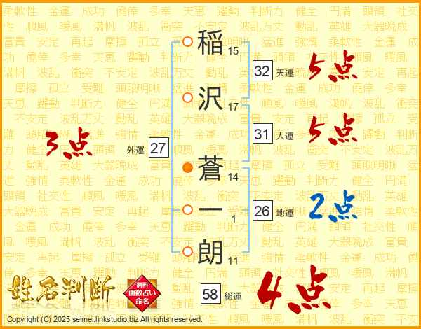 稲沢蒼一朗さんの総運は58画の4点!