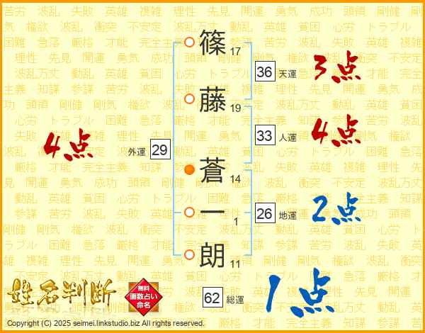 篠(17画)藤(19画) 蒼(14画)一(1画)朗(11画)