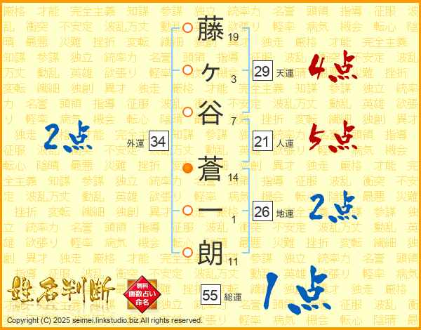 藤ヶ谷蒼一朗さんの総運は55画の1点!
