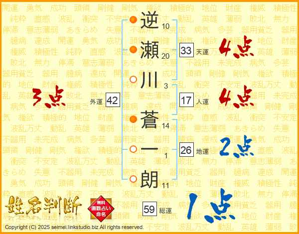 逆瀬川蒼一朗さんの総運は59画の1点!