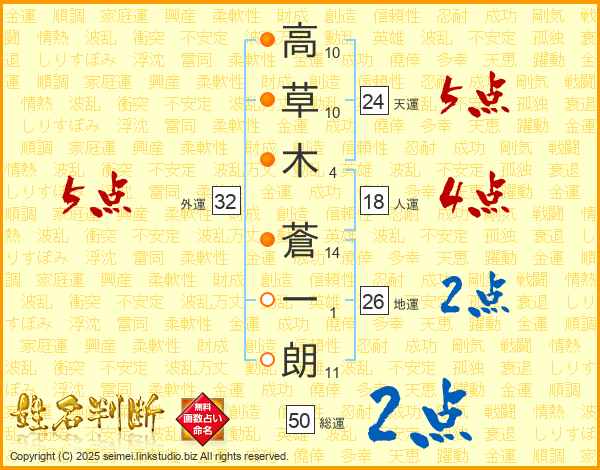 高草木蒼一朗さんの地運は26画の2点!