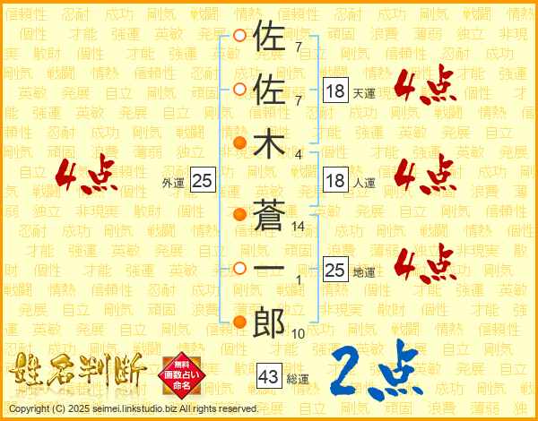 佐(7画)佐(7画)木(4画) 蒼(14画)一(1画)郎(10画)