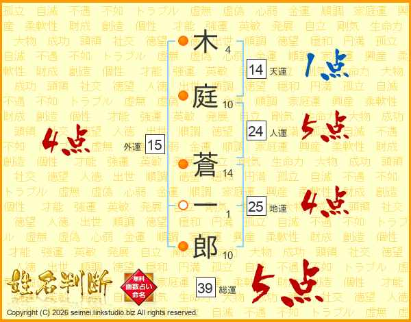 木庭蒼一郎さんの総運は39画の5点!