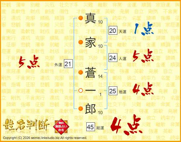 真家蒼一郎さんの総運は45画の4点!