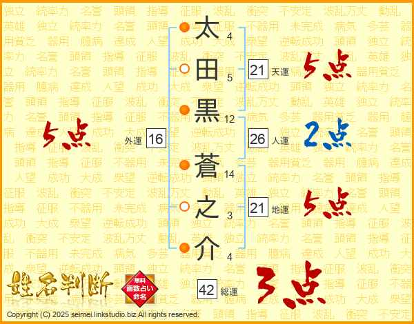 太田黒蒼之介さんの天運は21画の5点!