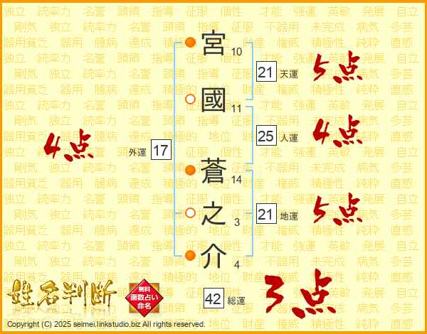 宮(10画)國(11画) 蒼(14画)之(3画)介(4画)