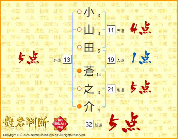 小山田蒼之介さんの総運は32画の5点!