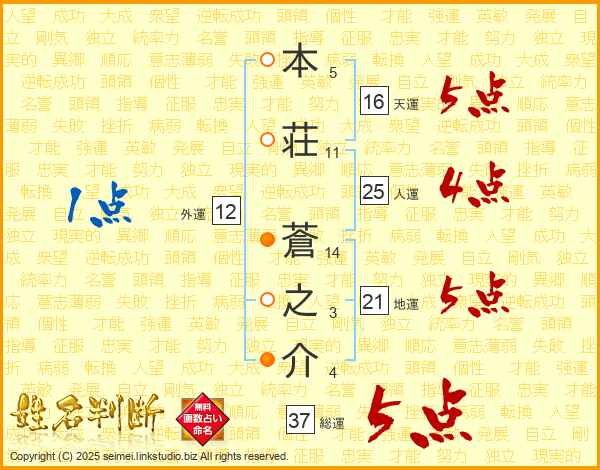 本(5画)荘(11画) 蒼(14画)之(3画)介(4画)