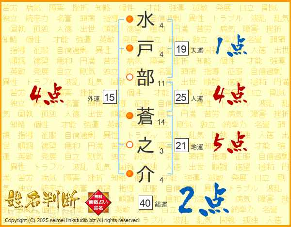 水(4画)戸(4画)部(11画) 蒼(14画)之(3画)介(4画)