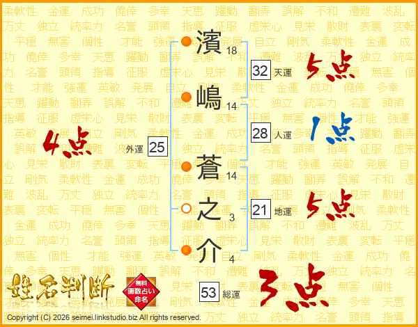 濱嶋蒼之介さんの天運は32画の5点!