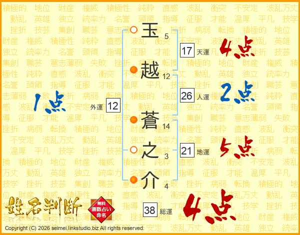 玉越蒼之介さんの総運は38画の4点!