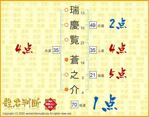 瑞慶覧蒼之介さんの外運は35画の4点!