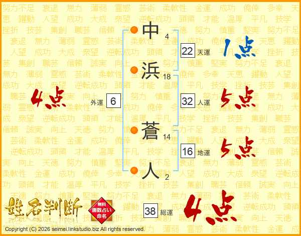中(4画)浜(18画) 蒼(14画)人(2画)