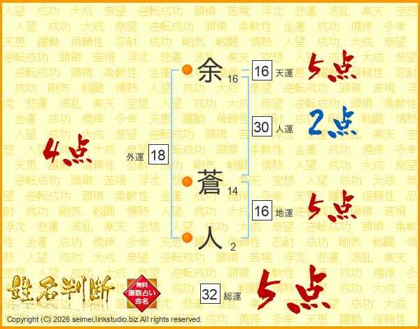 余蒼人さんの総運は32画の5点!