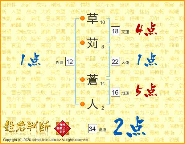 草苅蒼人さんの総運は34画の2点!