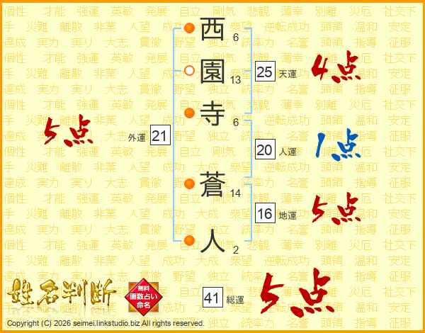 西園寺蒼人さんの総運は41画の5点!