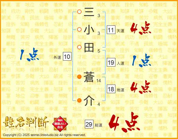 三(3画)小(3画)田(5画) 蒼(14画)介(4画)