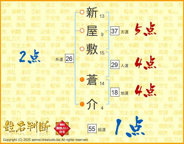 新(13画)屋(9画)敷(15画) 蒼(14画)介(4画)