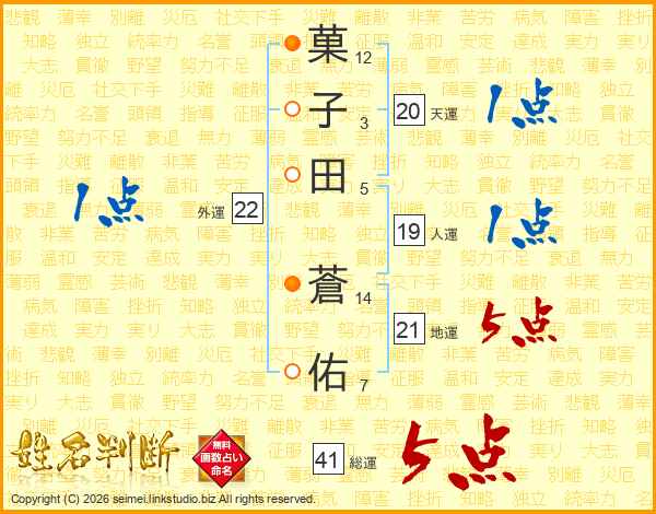 菓子田蒼佑さんの総運は41画の5点!